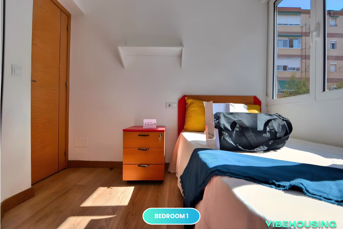 Esta habitación de 8 m² en un apartamento de coliving en Amapola 6, Getafe es ideal para estudiantes de la UC3M y jóvenes profesionales que buscan un espacio acogedor y bien comunicado. Cama de 105 cm con somier, y una vista exterior, es un lugar perfecto para descansar y estudiar. El apartamento incluye WiFi de alta velocidad y servicio de limpieza quincenal, para asegurar un entorno limpio. Ubicada cerca de la Universidad Carlos III y de transporte público, ¡es una opción ideal para quienes valoran la comodidad y la cercanía en Getafe!